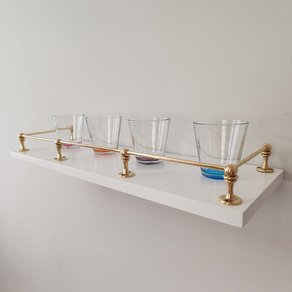 Design your own solid brass gallery rail with our easy-to-use components. Crafted from premium solid brass, these pieces allow you to create a custom rail system that perfectly matches your shelf or furniture. Timeless, durable, and elegant — the ideal finishing touch for your home.