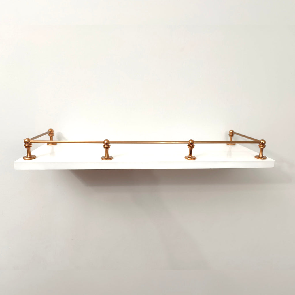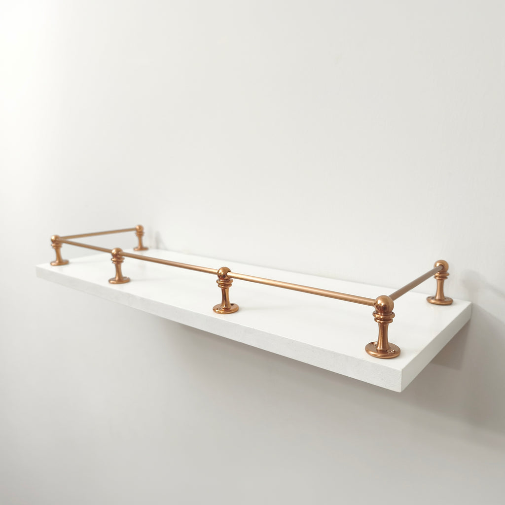 Design your own solid brass gallery rail with our easy-to-use components. Crafted from premium solid brass, these pieces allow you to create a custom rail system that perfectly matches your shelf or furniture. Timeless, durable, and elegant — the ideal finishing touch for your home.